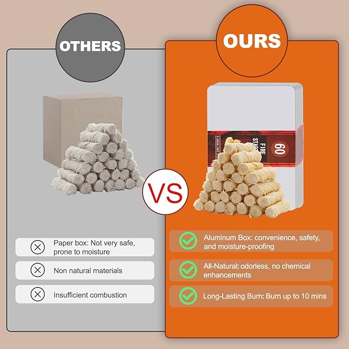 - Safe for Culinary Use: Our grill fire starters are odorless and smoke-free, making them ideal for safely igniting fires indoors. Perfect for grilling and cooking, they ensure your food remains unaffected and odorless