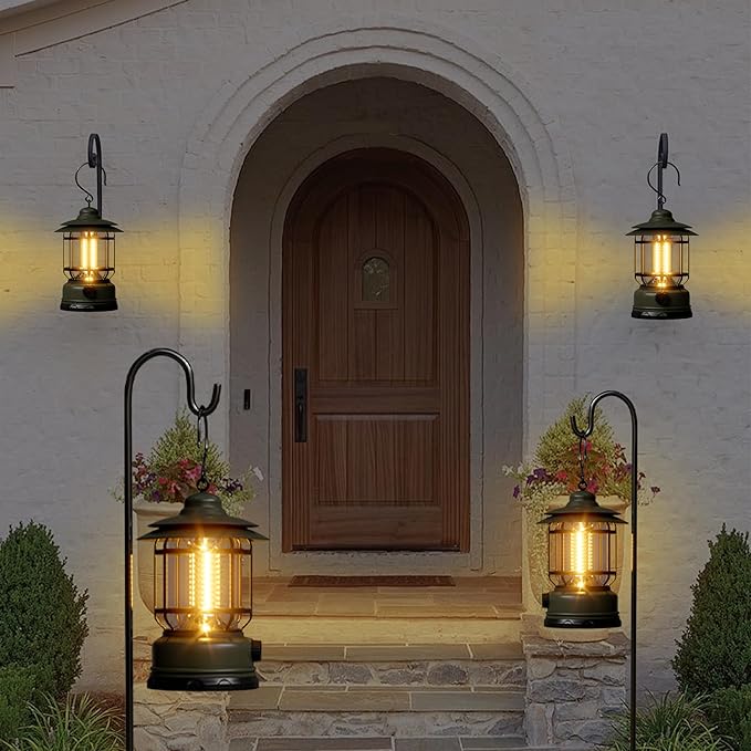 - 【Retro Style Design】The rechargeable camping lantern is compact and elegant and it adopted the latest COB bulbs, exude warm light and 360° lighting and create a cozy ambiance at night. Our battery operated lantern will bring a warm and brighter to your patio, garden, tent, outdoor and indoor