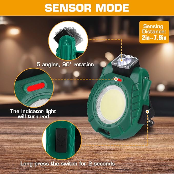 - 6 Modes & Memory Function: The mini work light offers 6 modes - Front Light, COB High, Medium, Low, Red and Red Strobe modes, meeting the needs of various situations. The Red mode is particularly useful as a signaling light at night. Lasts about 5 hours in Front Light mode and 10 hours in Low mode. When you turn it on again, it is the last used mode, saving time