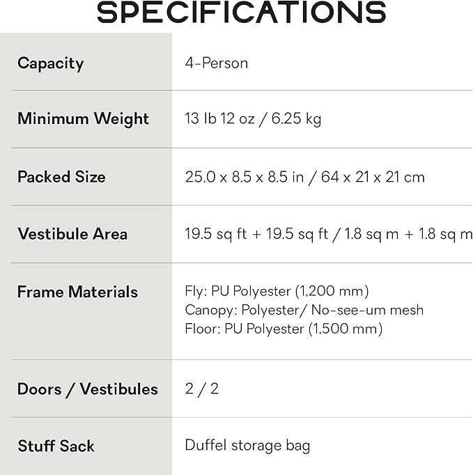 - Recommended Uses For Product : Family Camping, Car Camping, Inclement Weather Camping