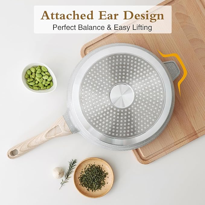 - 【Premium Ceramic Coating】: Our nonstick frying pan features a safe and healthy ceramic coating, SGS approved, and free from PFOA & PFAS Free; enjoy effortless cooking with minimal oil for a healthier diet; the ceramic non-stick coating ensures a smokeless and safe cooking experience