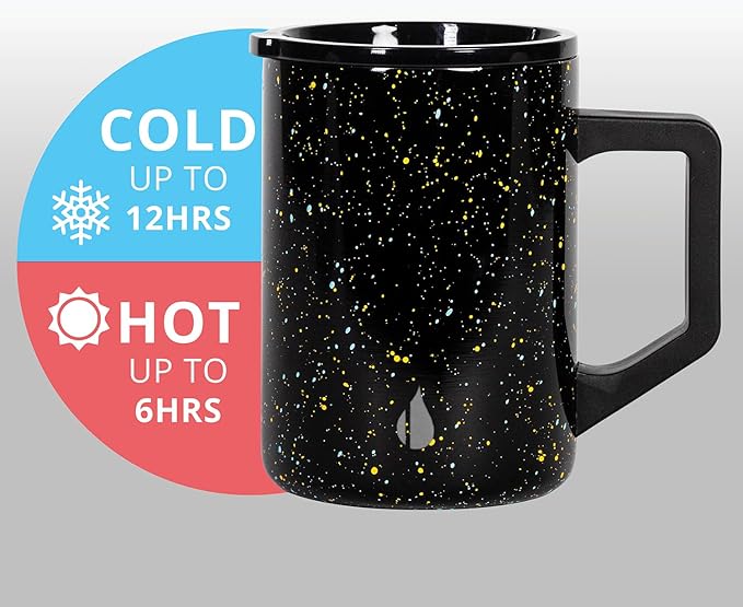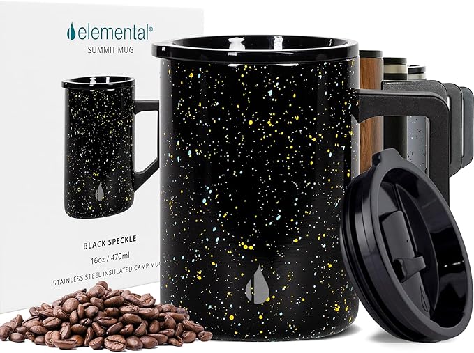 Elemental Insulated Coffee Mug - Triple-Wall Stainless Steel Summit Travel Cup for Hot and Cold Drinks - Thermal Coffee Mug with Lid and Handle for Camping, Office & Travel 16oz - Black Speckle