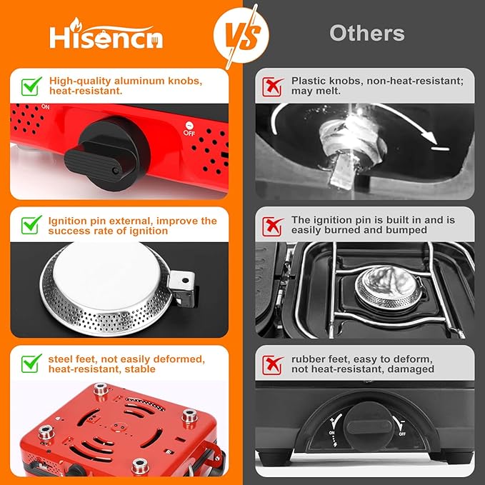 - [Stable, Non-Slip Footpads for Secure Placement] – Designed with durable steel footpads, this stove offers superior stability and heat resistance compared to rubber feet on competitor models, which can deform or melt. This ensures your stove stays securely in place, even on uneven surfaces, for safe, worry-free cooking.