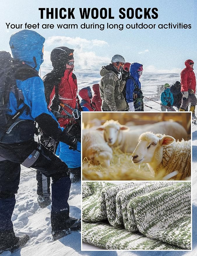 - SUITABLE FOR MANY SCENE WEARING: The thick winter socks for men are widely used in indoor or outdoor sports activities, hiking, skiing, leisure, business, daily work and other scenes. Comfortable men's socks are an ideal gift for Christmas surprise