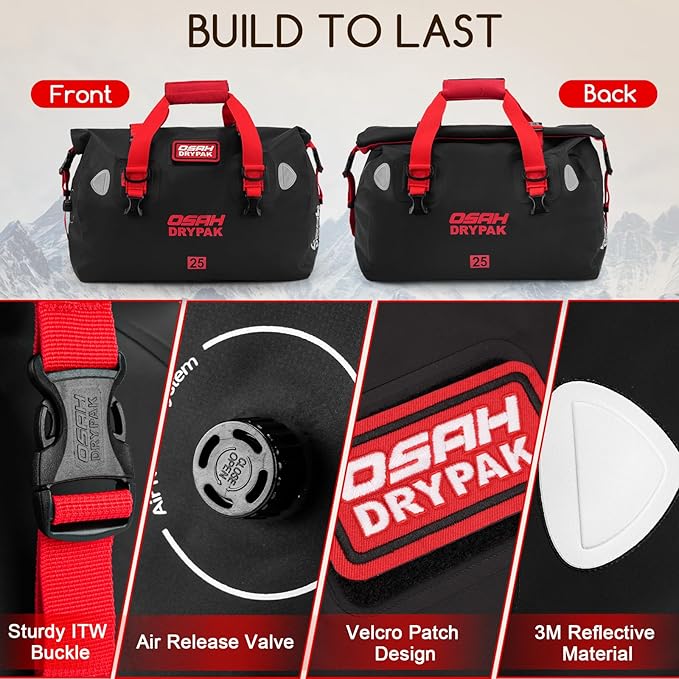 - WATERTIGHT PROTECTION: OSAH DRYPAK duffel bag is made of durable high-strength PVC, which is completely waterproof & snowproof. Ideal weekender bag for all your sailing, fishing, camping, sporting, boating, and motorcycling travel adventures.