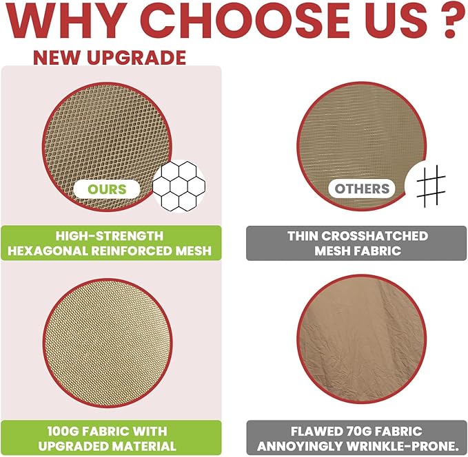 - Durable 100G Polyester Mesh Screen - Features reinforced stitching and weather-resistant construction for extended outdoor performance.