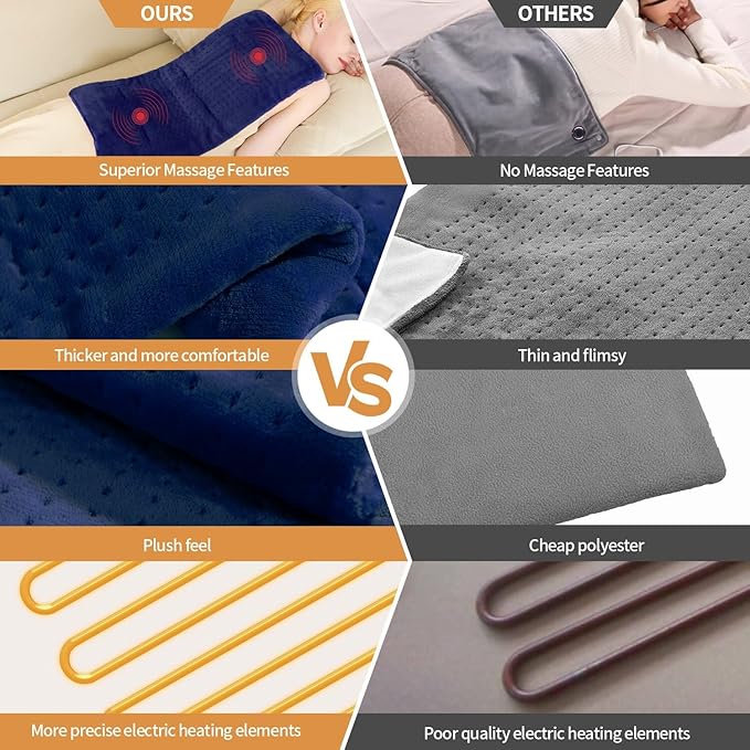 - SOFT FLANNEL MATERIAL: Heating pad is made of soft fabrics and is 12 * 24 inches,feels comfortable on the skin and conforms more closely to the body's curves for added warmth,providing soothing warmth whenever you need it.Weighted heating pad built-in heating wire technology with denser heating points ensure that every corner of the blanket is heated quickly and evenly. Ensures that you can relax while enjoying the gentle heat from the pad.