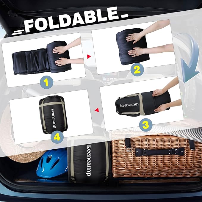 - Larger and Wider: Keencamp sleeping bag measures 74.80*33.07 inches, with a package size of 16.53*13.38*5.51 inches, weight 6.72lbs. The oversized sleeping bag for adults of 6 feet in tall, to provide enough space and even allow XXL individuals to move freely.