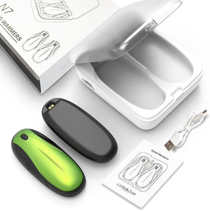 - 【Long-Lasting Warmth】: Both hand warmers are individually equipped with a 2000mAh battery, which can be set to three different temperature modes. A single hand warmer can continuously generate 10H(95-107℉)/7H(107-118℉)/4.5H (118-131℉) when fully charged.Also,the charging case is equipped with a 10000mAh battery which can charge two hand warmers 2-3 times at the same time when fully charged.