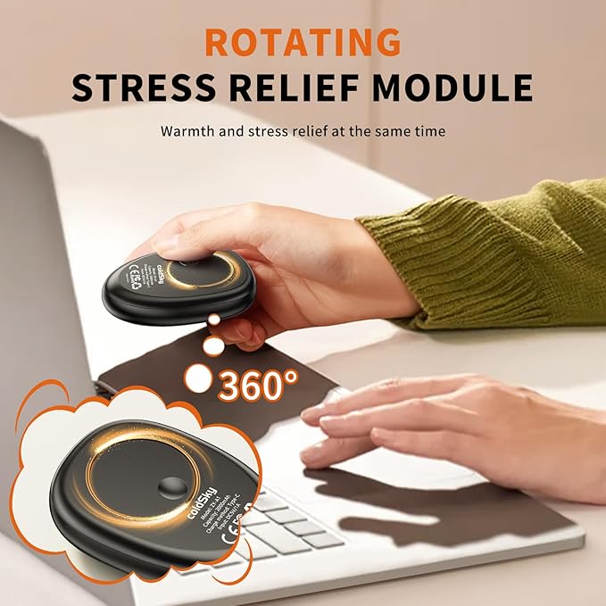 - 【Pressure Relief Module】We designed a rotating disk on the back of the hand warmer, the pleasant of each spinning will reduce anxiety, stress, or other attention disorder issues. Suitable as a warm gift for men, women, seniors and children on Thanksgiving, Christmas, Birthday, Valentine's Day.
