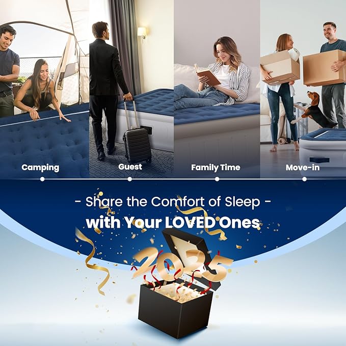 - Luxury Comfort Experience: KINGJERRY air mattress top layer is made of velvet-like flocking material, soft and gentle on the skin; Lying on the air mattress, the body is surrounded by a delicate touch like clouds, and fatigue gradually dissipates, air mattress queen with built in pump allowing you to enjoy comfort and restful sleep all night