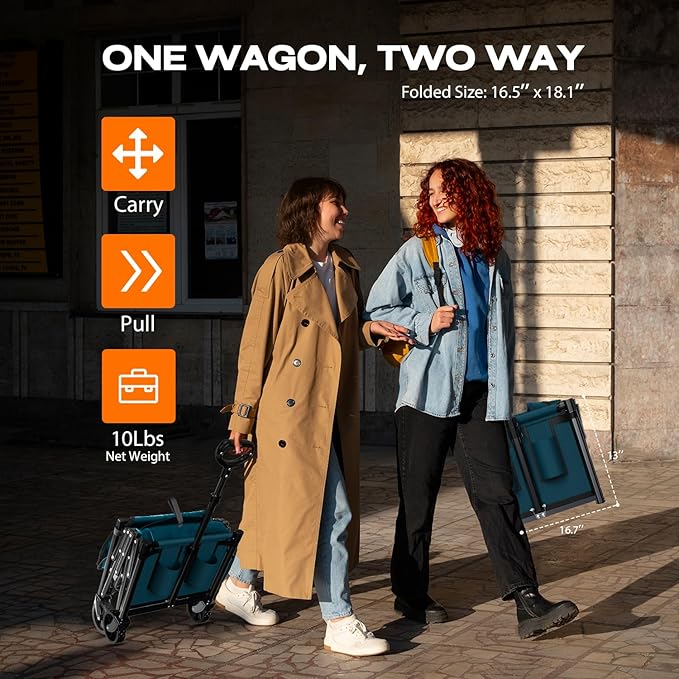 - ๐๐ข๐ ๐ก๐ญ๐ฐ๐๐ข๐ ๐ก๐ญ & ๐๐จ๐ฆ๐ฉ๐๐๐ญ:Weighing only ๐๐๐ฅ๐๐ฌ, this foldable wagon cart features a quick-folding design that collapses into an ultra-compact ๐.๐ ๐๐ฎ.๐ ๐ญ. size. Itโs easy to carry with one hand, and fits perfectly in car trunks, closets, or narrow spaces.