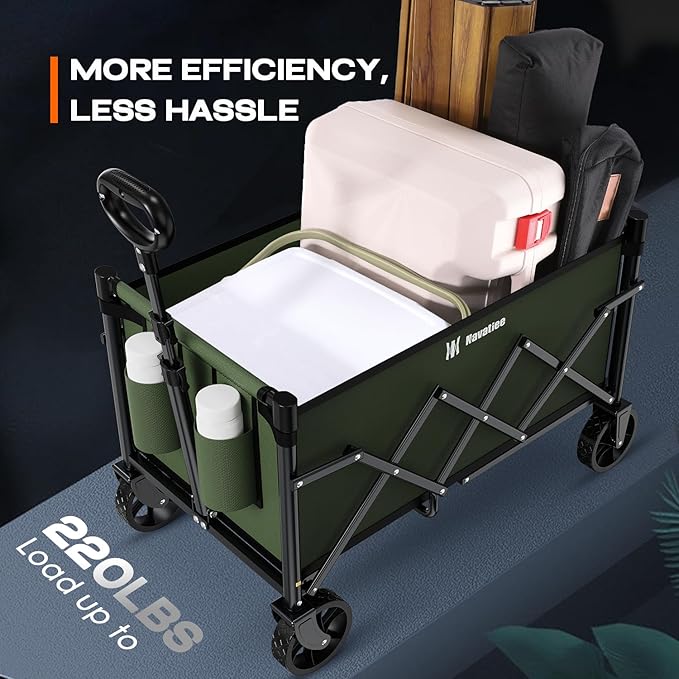 Navatiee Portable Foldable Collapsible Wagon with Wheels, 220lbs Weight Capacity Utility Grocery Shopping Cart, Lightweight Mini Folding Wagon for Outdoor, ArmyGreen