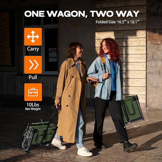 - ๐๐ข๐ ๐ก๐ญ๐ฐ๐๐ข๐ ๐ก๐ญ & ๐๐จ๐ฆ๐ฉ๐๐๐ญ:Weighing only ๐๐๐ฅ๐๐ฌ, this foldable wagon cart features a quick-folding design that collapses into an ultra-compact ๐.๐ ๐๐ฎ.๐ ๐ญ. size. Itโs easy to carry with one hand, and fits perfectly in car trunks, closets, or narrow spaces.