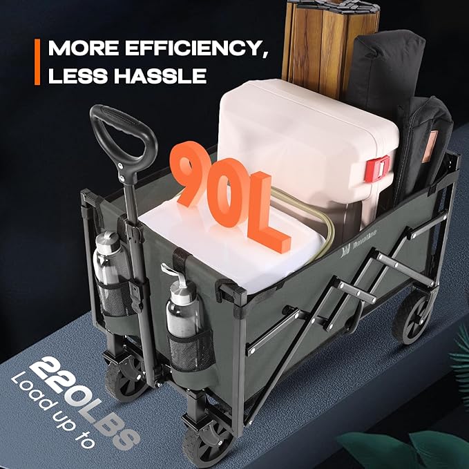- ๐๐ฆ๐จ๐จ๐ญ๐ก ๐๐๐ง๐๐ฎ๐ฏ๐๐ซ๐๐๐ข๐ฅ๐ข๐ญ๐ฒ:Equipped with 360ยฐ rotatable front wheels and an ergonomic handle, this wagon glides easily through tight spaces, uneven terrains, and outdoor environments. Itโs designed to make every trip smooth and effortless.