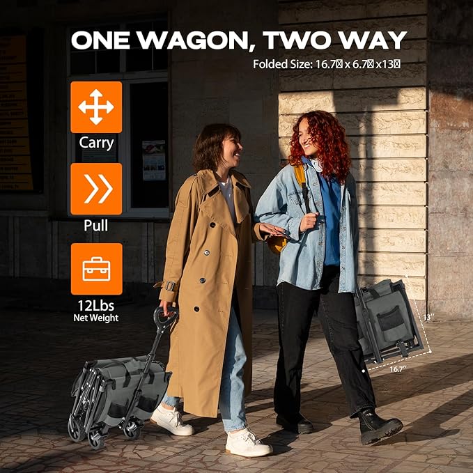 - ๐๐ข๐ ๐ก๐ญ๐ฐ๐๐ข๐ ๐ก๐ญ & ๐๐จ๐ฆ๐ฉ๐๐๐ญ:Weighing only ๐๐๐ฅ๐๐ฌ, this foldable wagon cart features a quick-folding design that collapses into an ultra-compact ๐.๐ ๐๐ฎ.๐ ๐ญ. size. Itโs easy to carry with one hand, and fits perfectly in car trunks, closets, or narrow spaces.
