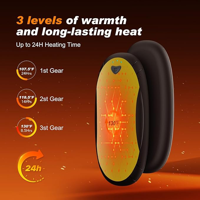 - 【AI Temperature Sensor Chip】 - It has an integrated intelligent AI temperature control chip that can provide precise 3-level heat regulation, feedback, and monitoring. By continuously analyzing and detecting the temperature between the hand warmer and your hands, it ensures precise heat control for optimal comfort and safe heating, with a maximum temperature of 131℉.