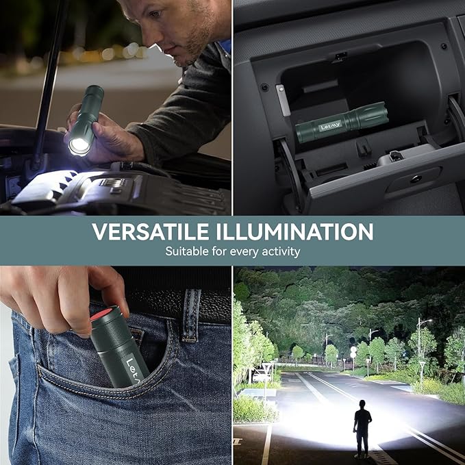 - 【WATERPROOF & HIGH QUALITY FLASHLIGHTS】LETMY flash light can waterproof from splashing water from any angle and heatproof. Suitable for the outdoor environment and adverse weather conditions. The body of this flashlight is made of high quality military grade aluminum alloy. This LED flashlight is long-lating enough for long time daily using