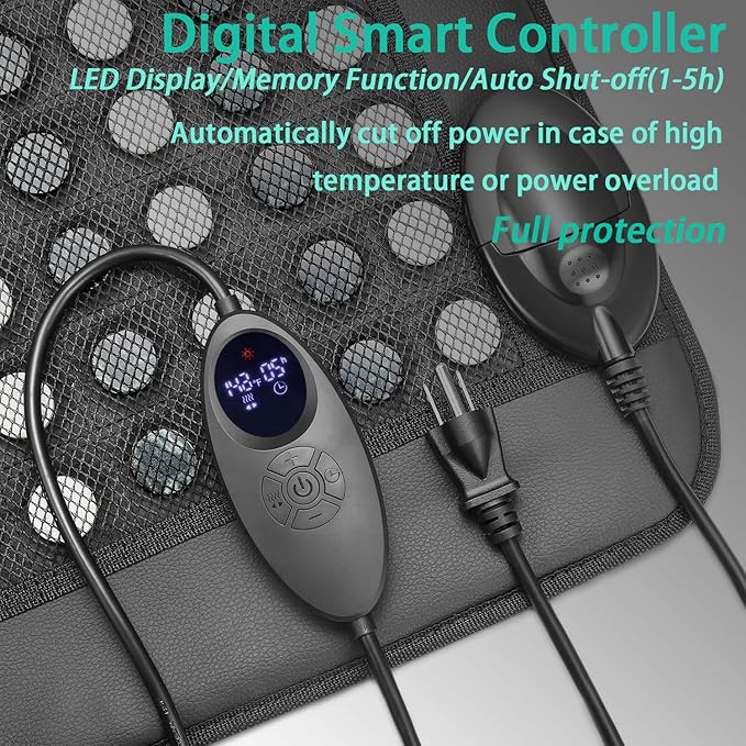 - Smart Controller - Intelligent constant temperature setting [86-158°F], automatic shut-off [1-5 hours], memory function. The jade heating pad requires more than 5 minutes of warm-up time.