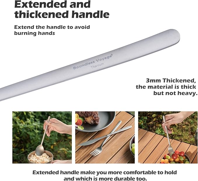 - HIGH QUALITY TITANIUM - These titanium cutlery are safe and reusable, no after taste on them & they are also odorless & flavorless. Titanium cutlery set are much better than any plastic/wooden cutlery set or stainless steel cutlery set.
