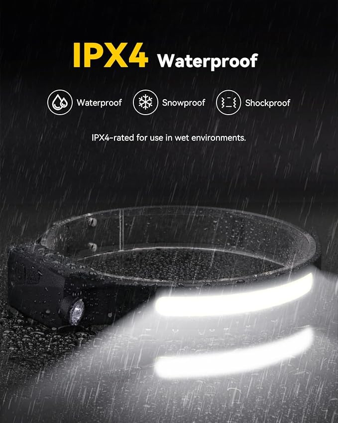 - Durable and Weatherproof: Crafted with premium materials and an IPX4 waterproof rating, this headlamp is built to withstand tough weather conditions, making it an ideal companion for outdoor enthusiasts.