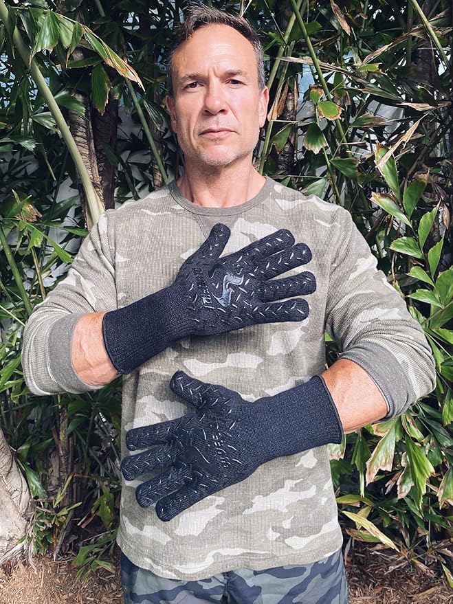 - WHAT OUR CUSTOMERS ARE SAYING - I can actually handle fire logs! Perfect for my Big Green Egg! Amazing Baking Gloves! Great forearm protection! A must have for our commercial BBQ business! Very Impressed! These gloves deliver! Excellent gift for the cook in your life! Wow! They handle the heat!