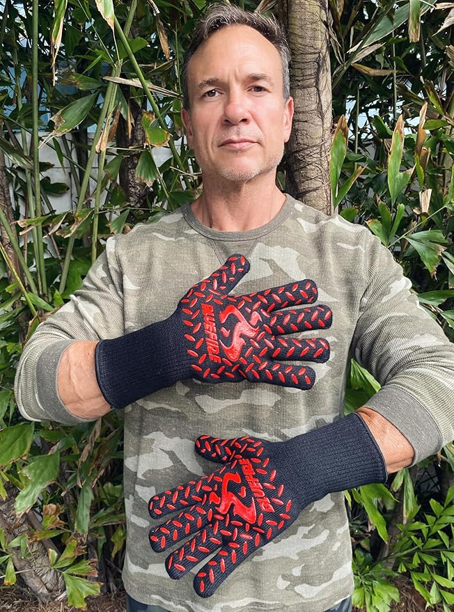 - WHAT OUR CUSTOMERS ARE SAYING - I can actually handle fire logs! Perfect for my Big Green Egg! Amazing Baking Gloves! Great forearm protection! A must have for our commercial BBQ business! Very Impressed! These gloves deliver! Excellent gift for the cook in your life! Wow! They handle the heat!