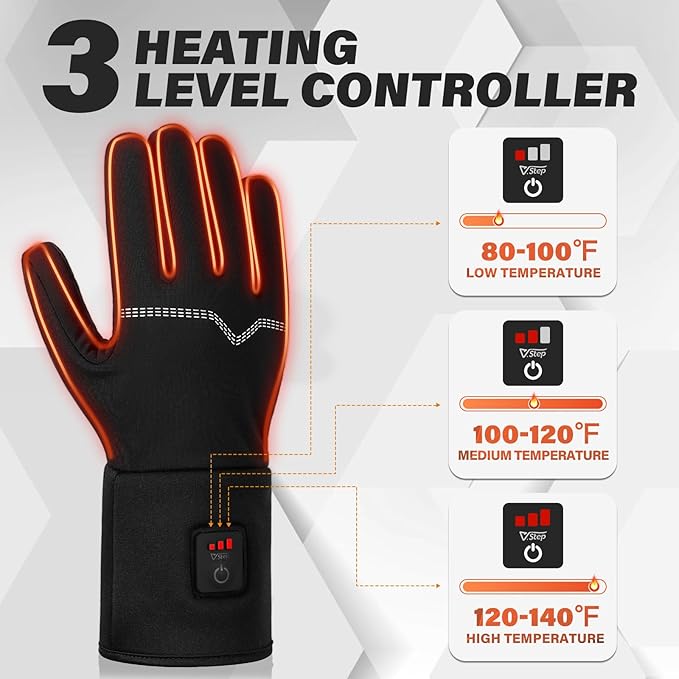 V.Step Heated Gloves for Men Women Rechargeable, Winter Gloves Electric Heated Glove Liners for Work, Skiing, Cycling