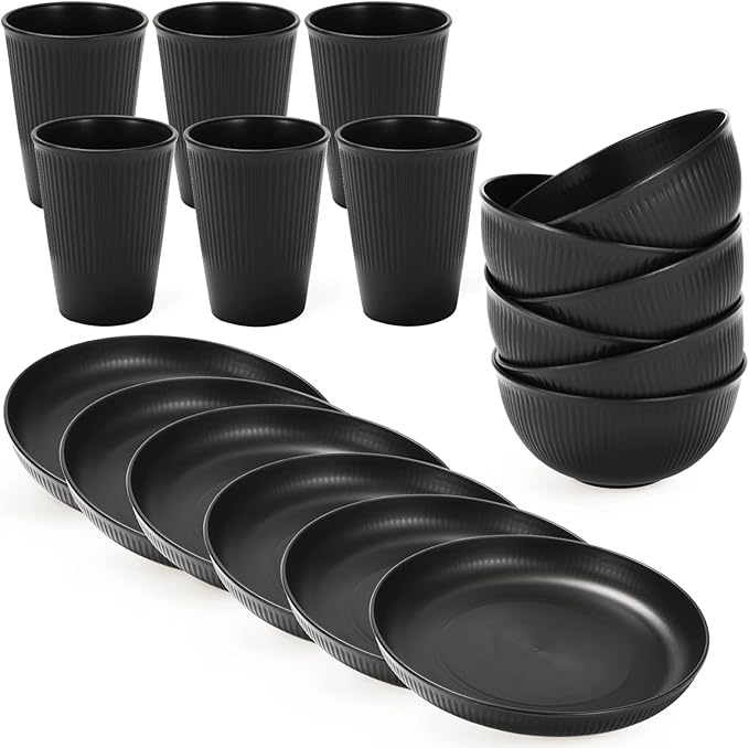 - Complete Dining Set: This unbreakable dishes set includes 6 large dinner plates, 6 large cereal bowls and 6 large drinking cups, providing everything you need for a family meal or gathering. It's an ideal solution for both everyday use and special occasions, ensuring you always have matching and stylish tableware on hand