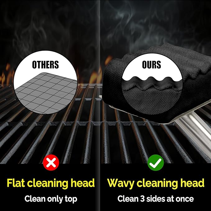 Grill Brush Bristle Free,Upgraded Aramid Fiber Wavy Pad Perfect for Cast Iron Grates/Porcelain/Weber Gas/Charcoal Grill,Replaceable Cleaning Head,Safe Grill Brush for Outdoor Grill