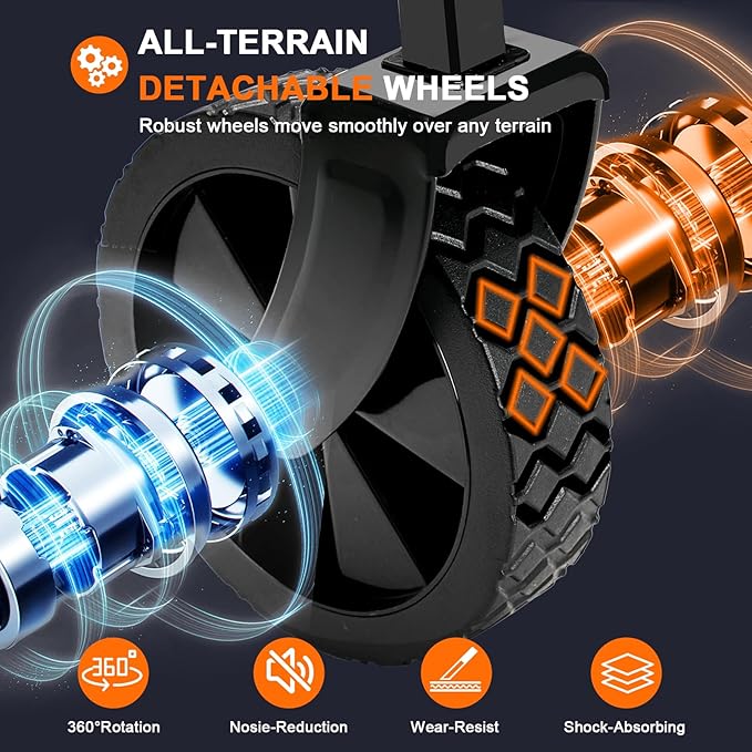 - 【Multifunctional Application-Utility Wagon】: This folding wagon cart is equipped with four detachable all-terrain wheels, including two front wheels that rotate 360° to easily move across different terrains. The grocery cart on wheels can not only accompany you to transport packages, but also to go shopping, camping, sports