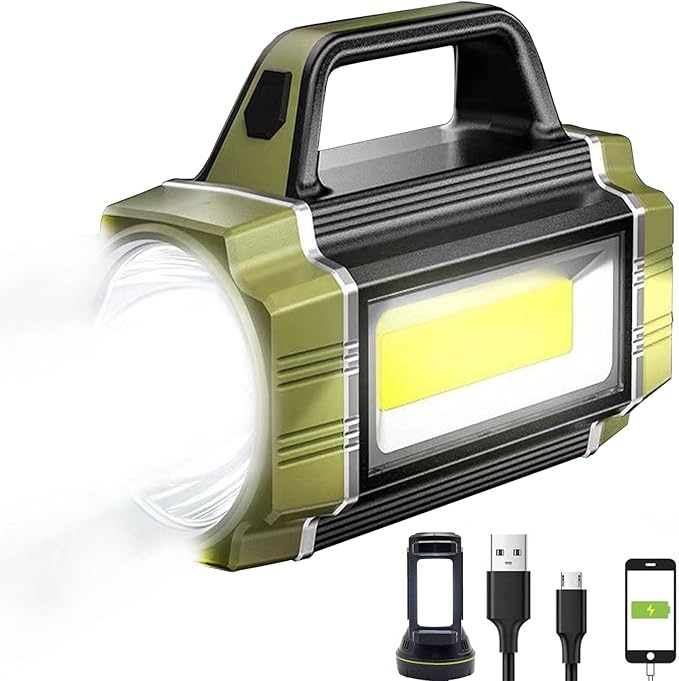 Solar Rechargeable LED Searchlight, Super Bright 13000LM Handheld LED Spotlight, Multi Function Camping Lantern Flashlight, 6 Light Modes, Waterproof IPX4, for Emergency, Home