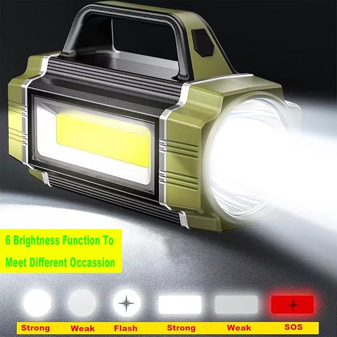 - 6 LIGHING MODES FOR CHOICE: The high lumens solar poewred flashlights spotlight with 6 lighting modes, it can be used as as Spotlight: Strong light, weak light, and strong flash light; and lantern: strong light, weak light and SOS red lights. So you can easily meet every lighting emergency with this super bright led search soprtlight lantern