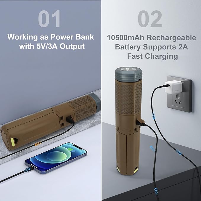 - 【10500mAh Rechargeable Battery】 Our camping lantern have a built-in 10500mAh rechargeable battery to keep you lit for extra long periods of time. In addition,the camping lantern also has the function of a charging bank,which can charge your mobile phone,tablet computer, and Bluetooth headset,ensuring that you will not lack of electricity when camping outdoors