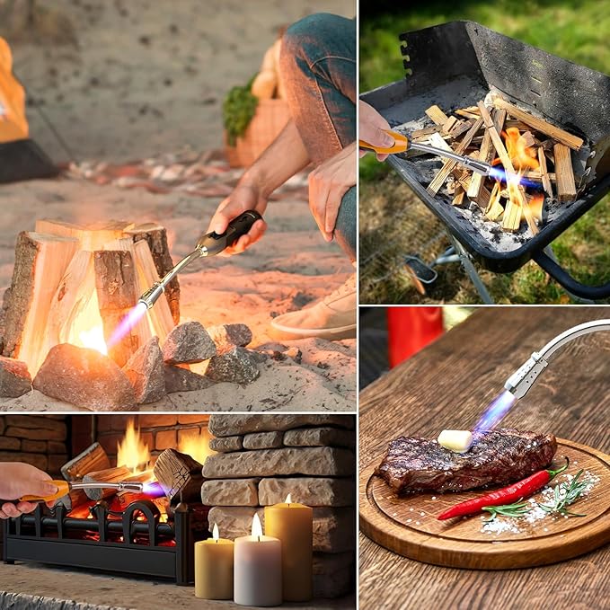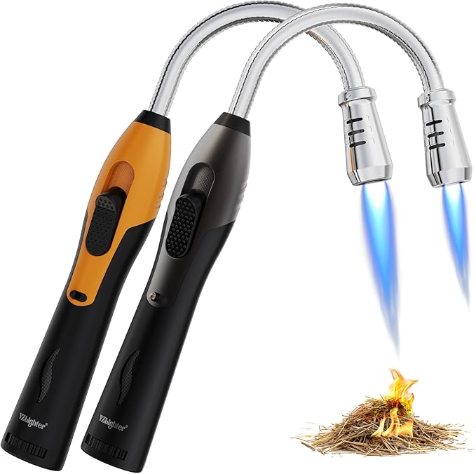 - 【Flexible Long Neck & 360° Elbow】- YZLighter long grill lighters comes with a 360° flexible and extended long neck to protect you from burns, and this butane torch lighter with a total length of 11.3 inch can be rotated with 360 degrees or bent to different angles at will to meet your needs.