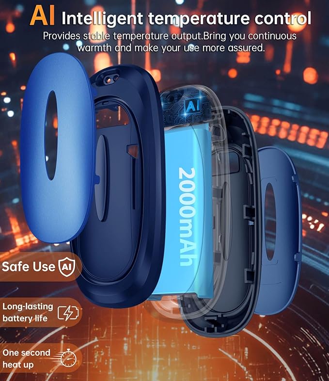 - Powerful battery life, warmth on the go - The charging box is equipped with a 10,000mAh large-capacity battery to provide endless energy for your hand warming experience. Each hand warmer has a built-in 2,000mAh battery, which means the charging box can fully charge 5 hand warmers, ensuring you enjoy lasting warmth during long outdoor activities. USB-C charging technology can fully charge the charging box from empty in about 6.5 hours, ready for your next adventure.