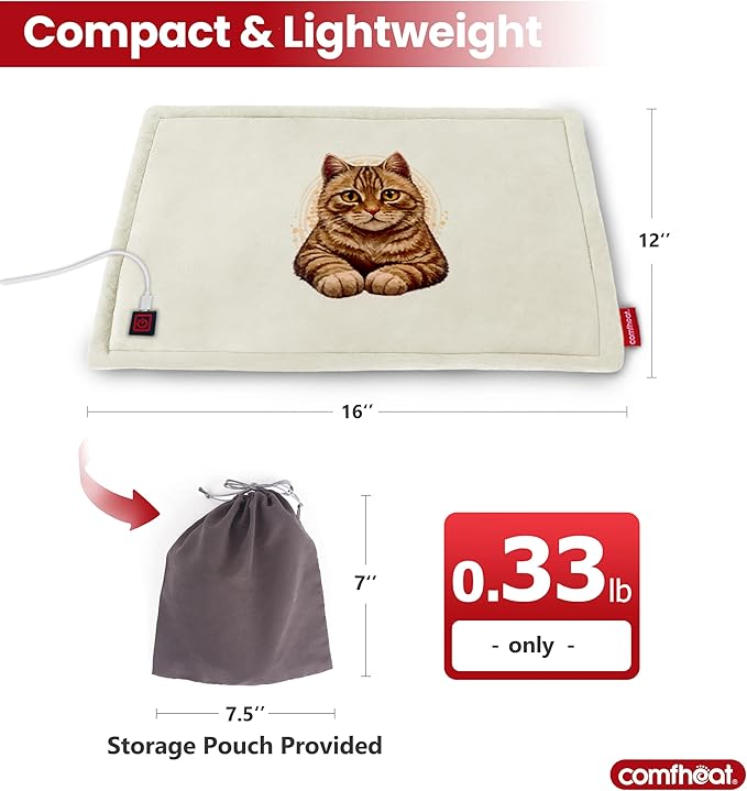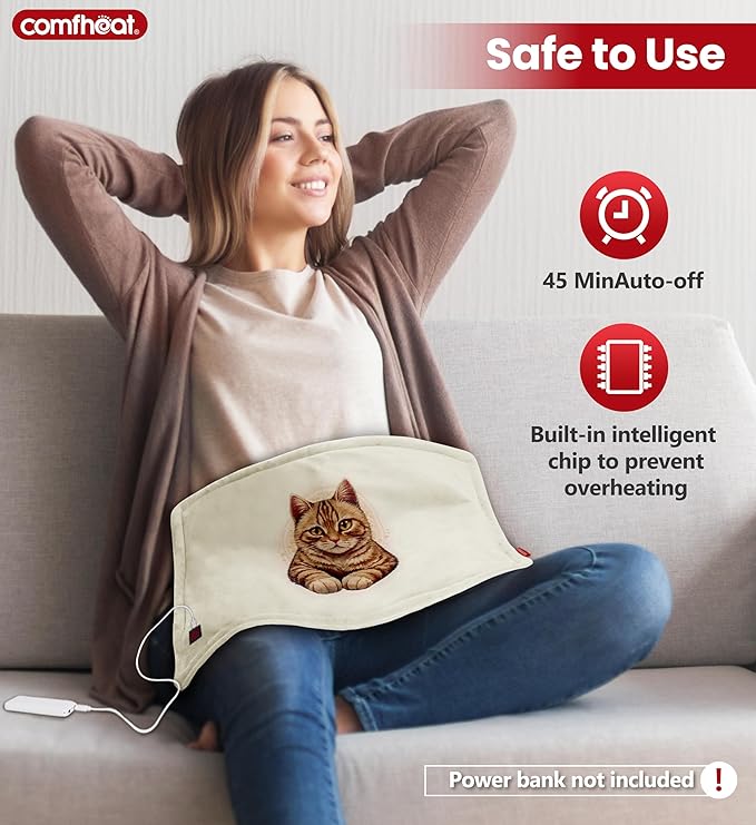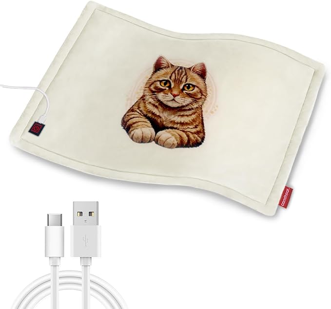 USB Heating Pad, 5V Heated Travel Pads for Airplane, Camping, 3 Heat Settings & Auto Shut Off, Hot Therapy for Pain Relief Abdomen Cramps (16"x 12") (Non-Chargeable) Cat