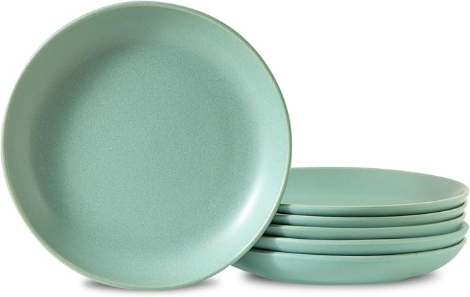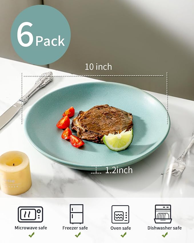 Dinner Plates Set of 6, 10 Inch Stoneware Plates for Salad, Appetizer, Dessert, Farmhouse Dinnerware Dishes for Christmas Thanksgiving Gift, Microwave & Dishwasher Safe, Matte Turquoise