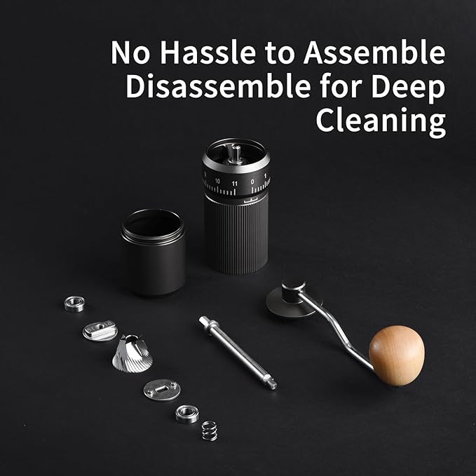 - PORTABLE AND EASY TO CLEAN — A simple twist separates the parts for cleaning, no tools required. This lightweight manual coffee grinders offers a touch of luxury in its portability and comes with a convenient storage bag, making it perfect for outdoor adventures. It's effortless to disassemble and clean thoroughly without any devices. The conical burr coffee grinder is relatively easy to take apart for cleaning. An espresso brush is included inside the coffee grinder espresso for superior cleaning results
