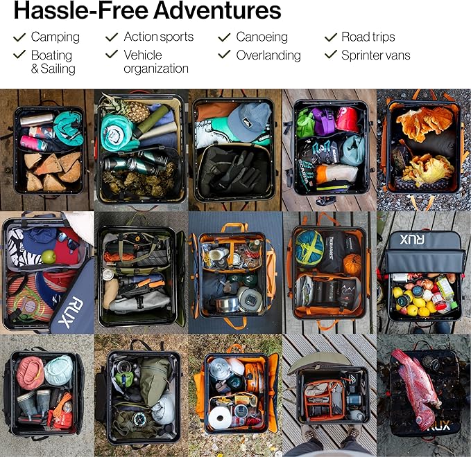 - Lifetime Durability – Constructed to handle the toughest conditions, this camping box storage solution is lightweight, repairable, and backed by a lifetime guarantee. No cheap materials, no compromises—just performance you can rely on. From helmets and shoes to tools and snacks, RUX keeps your gear dialed, organized, and ready to grab. Perfect for hunting gear storage, road trips, off-grid adventures, or daily garage use. Break it? We’ll fix or replace it, guaranteed.
