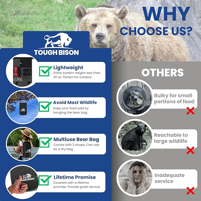 - Easy to Use – Equipped with a bear bag hanging kit, this bear-proof bag allows for quick and hassle-free setup, perfect for any camping or backpacking scenario.