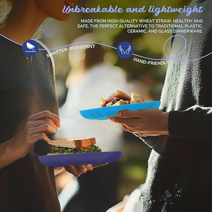 - LIGHTWEIGHT AND UNBREAKABLE: The reusable dessert plates made from high - quality wheat straw material have the characteristics of being unbreakable and lightweight. They are not only friendly to hand joints but also very suitable for families with elderly people and children, ensuring safety during use. They are the perfect alternative to traditional plastic, glass, and ceramic plates