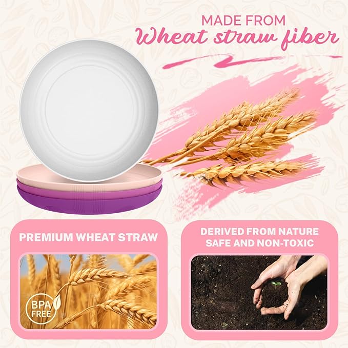 - PREMUIM WHEAT STRAW FIBER: Homienly's plates are made from natural materials, crafted with premium wheat straw. They are safe and non - toxic, free from harmful substances, ensuring the health of you and your family, and meeting your daily dining needs