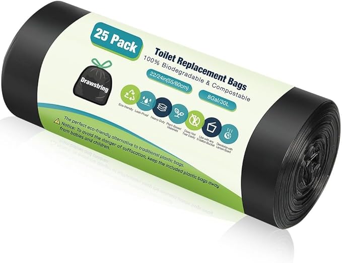 Portable Toilet Bags, Camping Toilet Bags, Biodegradable Toilet Bags with Drawstring & Lemon Scent, Compostable Bags for 5-8 Gallon Bucket Toilet Seat for Outdoor Camping Car Travel (25 pack)