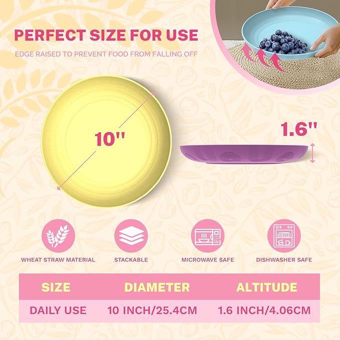 - LIGHTWEIGHT AND UNBREAKABLE: The unbreakable plates made from high - quality wheat straw material have the characteristics of being unbreakable and lightweight. They are not only friendly to hand joints but also very suitable for families with elderly people and children, ensuring safety during use. They are the perfect alternative to traditional plastic, glass, and ceramic plates