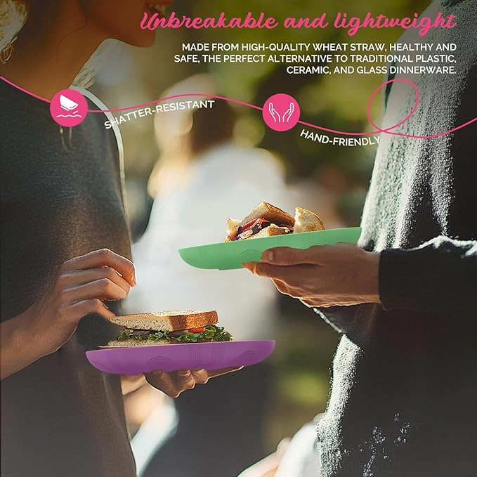 - LIGHTWEIGHT AND UNBREAKABLE: The reusable plates made from high - quality wheat straw material have the characteristics of being unbreakable and lightweight. They are not only friendly to hand joints but also very suitable for families with elderly people and children, ensuring safety during use. They are the perfect alternative to traditional plastic, glass, and ceramic plates