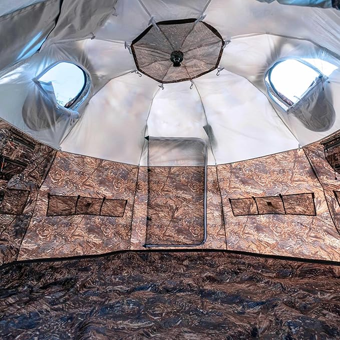 - Strong & durable - The frame of the tent is made of aviation aluminum alloy B95T1. When the tent is fully assembled it can easily withstand even strong winter winds. The dome shape improves aerodynamic features of the tent, making it easier to fight winds. It is equipped with mosquito nets on the windows and entrances, a zipper bottom and pockets on side walls.