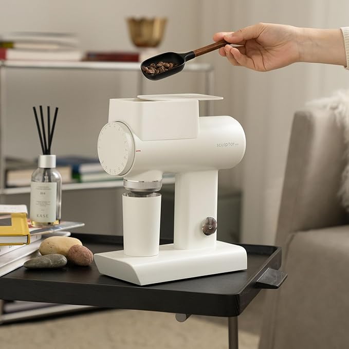 - [ Patented Rotary Knocker ] Ordinary coffee grinder lt's usually difficult to clean fines thoroughly from the grinderspout. Sculptor 064S coffee grinder designed this rotary knocker to have fines cleanedeffectively, You will just have to quick turn the knocker, andmost of the fines will be shaken off.