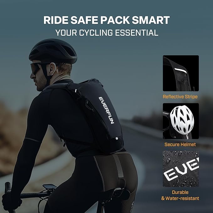 - Integrated Storage Management - The EVERFUN hiking day pack is equipped with 4 spacious pockets, this backpack allows you to conveniently store soft flasks, snacks, and other running gear, essentials. The secure zipper pocket is ideal for keeping your valuables such as keys and phones safe and easily accessible. Tube Clamp: Keeps your hose and tube secure and accessible.