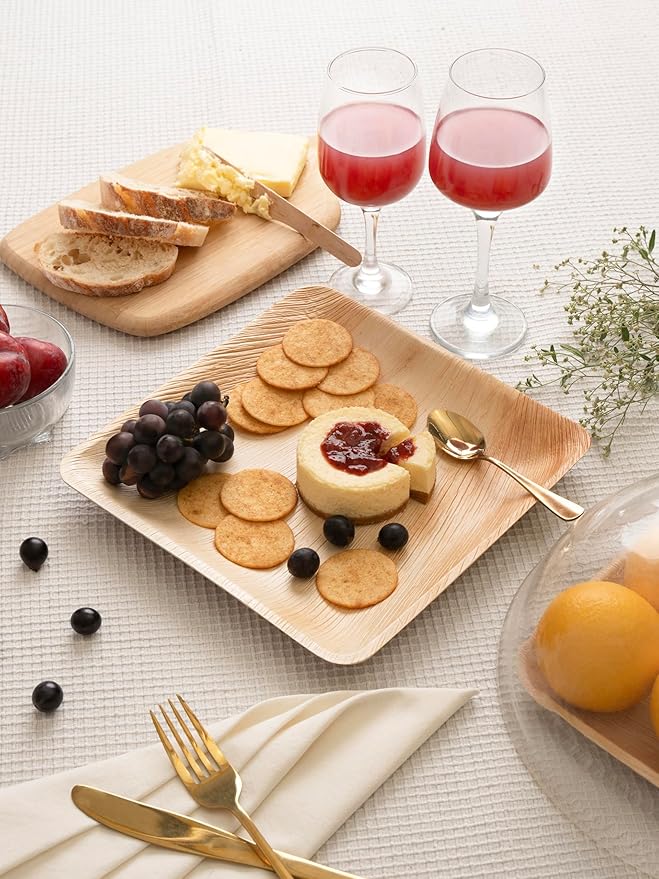 - PROTECT MOTHER NATURE: Our disposable party plates are eco-friendly, as they are also known as compostable plates. They are made from fallen palm leaves, which are naturally shed by the tree, meaning no trees are cut down or harmed in the process. Palm leaf plate is considered more sustainable and environmentally friendly than paper plates due to its composition and compostability.